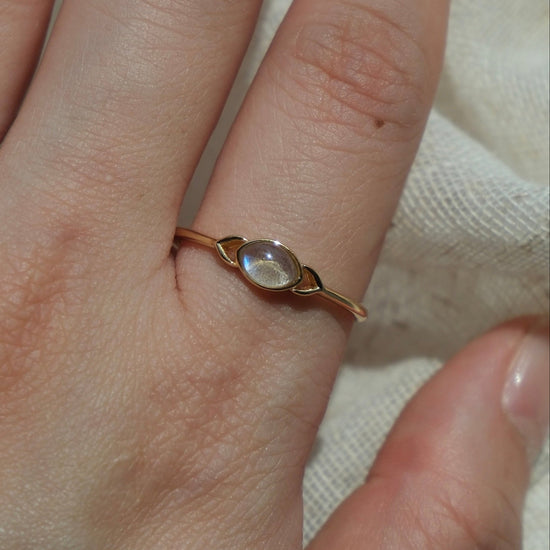 This delicate labradorite ring captures subtle cosmic beauty in a minimalist form. The marquise-cut labradorite flashes soft iridescence in natural light. Perfect for everyday wear or stacking with your other favorites, this piece brings a quiet, celestial elegance to your jewelry collection.